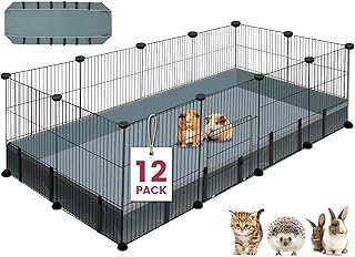 12 Panels Small Animal Playpen, 48″ x 24″ x 16″ Pet Playpen with Waterproof Mat, C&C Cage for Guinea Pigs, Puppy Play Pen, Bunny Playpen, Indoor Outdoor Portable Metal Wire Yard Fence