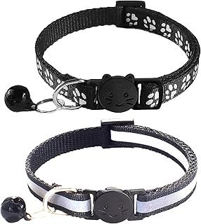 2 Pack Breakaway Cat Collars with Bells, Reflective Design and Claw Print Design, Safety Buckle Kitten Collars Adjustable from 7.5 to 12.5 Inches (Black)