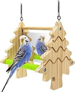 Bird Mirror Toy Perch, 2-Sided Hd Parakeet Mirrors & 2 Cotton-Wrapped Perches for Multiple Birds, Wooden Frame Hanging Parrot Swing for Cage, Safe No Sharp Edges Bird Toy for Budgie Lovebird Cockatiel