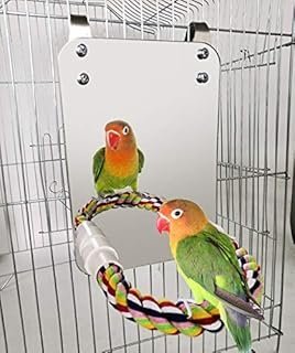 BWOGUE 7 Inch Bird Mirror with Rope Perch Cockatiel Mirror for Cage Bird Toys Swing Parrot Cage Toys for Parakeet Cockatoo Cockatiel Conure Lovebirds Finch Canaries