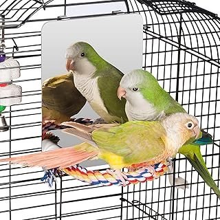 Colorday 7″ Bird Mirror for cage with Rope Perch, Bird Swing, Parrot Cage Toy for Parakeet Budgie African Grey Conure Cockatiel Lovebird Finch Canarie, Medium