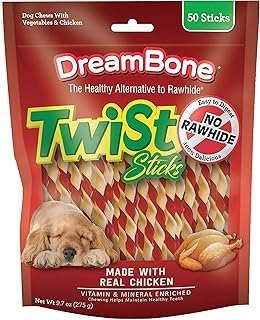 DreamBone Twist Sticks Chews for Dogs, 50 Count, Treat Your Dog to Easy-to-Digest Rawhide-Free Chews Made with Real Vegetables and Chicken
