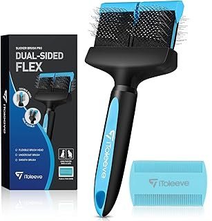 Dual Flex Slicker Brush Dog Brush, Gentle Grooming Tool for Sensitive Dogs & Cats – Ideal for Long Hair, Removes Undercoat, Tangles, and Knots