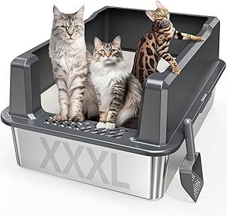 Extra Large XXL Stainless Steel Cat Litter Box with Lid, 26″ L x 18″ W x 12″ H Metal Litter Box with Hight Sides for Big Cats & Multiple Cats, Never Absorbs Odors, Anti-Urine Leakage, Easy Cleaning