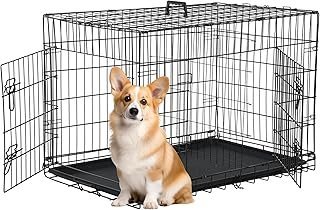 FDW 30 inch Dog Crate Dog Kennel Cage with Double Door Folding Metal Wire Dog Cage with Removable Tray&Divider Panel,Pet Crate for Medium Dogs,Black