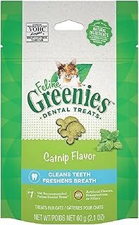 Greenies Cat Treats, Feline Veterinarian-Recommended Adult Natural Dental Treats, Catnip Flavor, 2.1 oz. Pouch