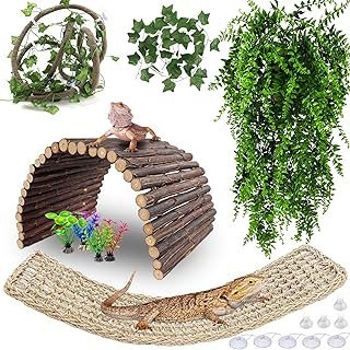 HERCOCCI Bearded Dragon Tank Accessories, Large Reptile Bridge Hammock Flexible – Jungle Climbing Vines and Leaves with Suction Cups Habitat Décor for Hiding& Climbing Snake Gecko Lizard Chameleon