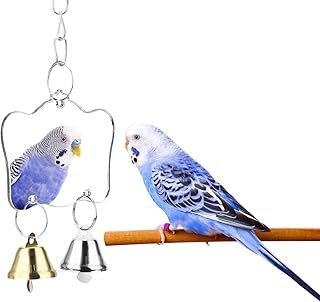 Hypeety Pet Bird Mirror Toy with Bells Hanging Toy for Parakeet Cockatiel Conure Lovebirds Finch Canary Cage Swing Fun Play Toy (Bird Mirror-2 Bells)