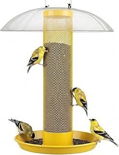 Kingsyard Finch Bird Feeder for Outdoors Hanging, Metal Mesh Tube Bird Feeders for Thistle & Nyjer Seed, Large Removable Tray & Rainproof Dome, 2.5 lbs Seed Capacity, Yellow