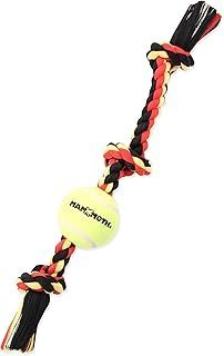 Mammoth Flossy Chews Color 3 Knot Tug w/Standard Tennis Ball – Premium Cotton-Poly Tug Toy for Dogs, Interactive Rope Dog Toy for Medium Dogs – 20” , Multi color