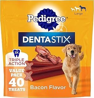 Pedigree Dentastix Dog Dental Treats, Large Breed Dog Treats, Bacon Flavor, 2.08 lb. Bag (40 Treats Total)