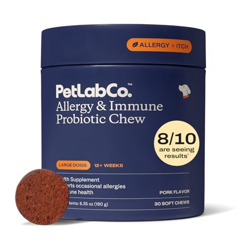 The PetLab Co. Allergy & Immune Probiotic Chew Supplement for Dogs includes 30 chews per container. Formulated to support immune response and relieve seasonal allergy symptoms, each chew delivers a blend of probiotics and immune-boosting ingredients. Designed for daily use, they help maintain your dog’s comfort year-round.