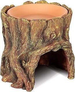 REPTIZOO Reptile Hide Cave Resin Moisture Keeping Reptile Cave with Clay Water Basin Humidifying Help Shedding for Leopard Gecko
