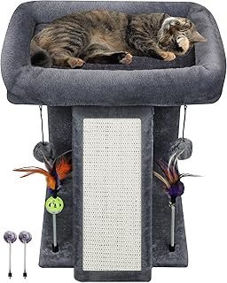 TWDEPART Cat Tree Tower with Cat Scratching Post for Indoor Cats, Activity Centre Climbing Tree with Scratching Board and Playful Toy Balls, Grey