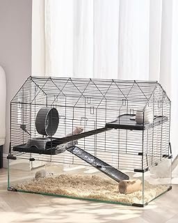 VEVOR Hamster Cage, 360° Viewing Transparent Hamster Habitats, Small Animal Cage, 29.5 x 17.3 x 24 in, Ventilated Pet Mouse Cages with Water Bottle, Portable Hamster House for Rats, Guinea Pigs