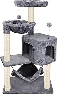 YUNIQUE Cat Tree with Cat Condo and Big Hammock, Grey